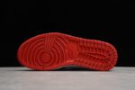The upper is constructed from premium leather and features a classic white base with bold red and blue overlays, reflecting the colors of the American flag. The distinctive Swoosh and Jordan Wings logo are prominently displayed, adding to the sneaker’s classic appeal. The mid-top design offers a balance between the traditional low-top and high-top silhouettes, providing extra ankle support while maintaining a sleek profile.