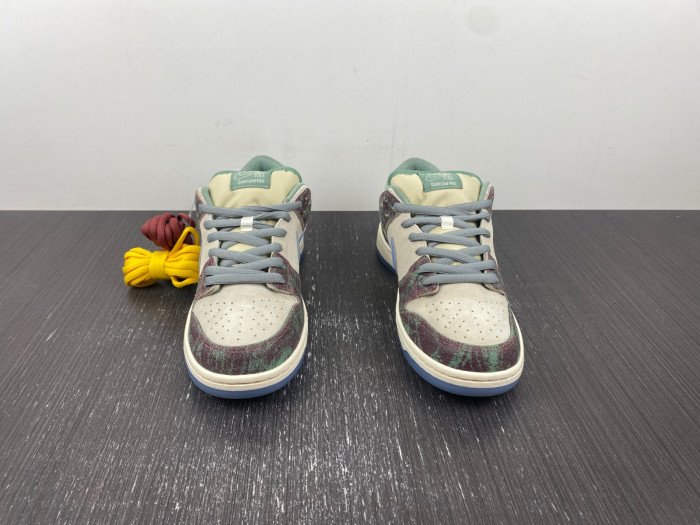 - Classic Nike SB Dunk Low silhouette with a cultural twist.