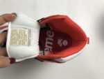 - White leather upper with red star detailing.
