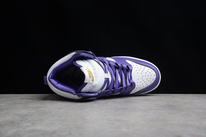 The Nike Dunk High SP “Varsity Purple” (W) is a bold and stylish sneaker designed specifically for women. Featuring a clean white leather base with striking varsity purple overlays, this high-top silhouette offers a fresh and timeless look. The padded collar and classic Dunk design ensure comfort and support, making it perfect for everyday wear. Whether you’re on the court or the streets, this sneaker combines style and functionality, making it a must-have addition to your rotation.